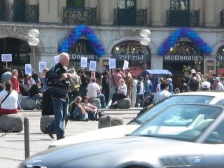 People holding up signs.. but it wsa a peaceful protest. Took this from quite far away with the zoom function cause didn't want to attract any unneccessary trouble. :)